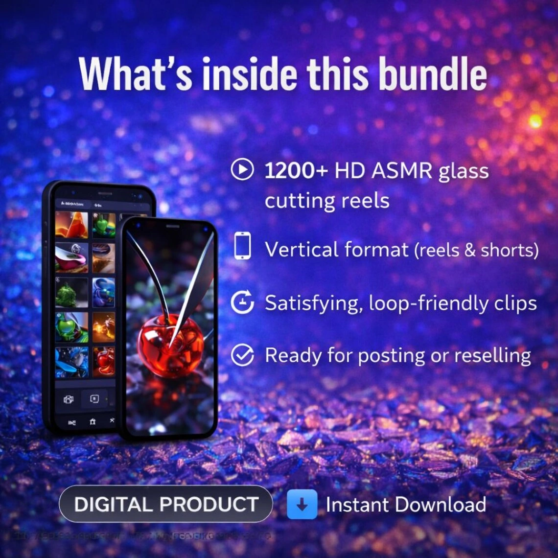 🧊 This 1200+ ASMR Glass Cutting Reels Bundle delivers visually stunning, calming, and viral-ready clips—PLUS the power to resell and earn unlimited income!
