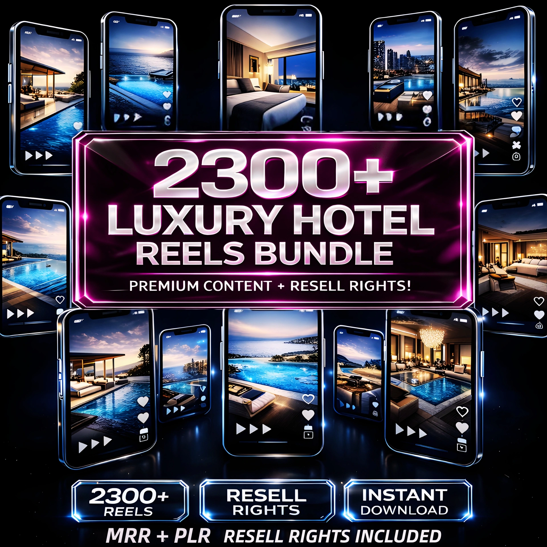 2300+ luxury hotel reels bundle with MRR and PLR, premium viral content for all platforms