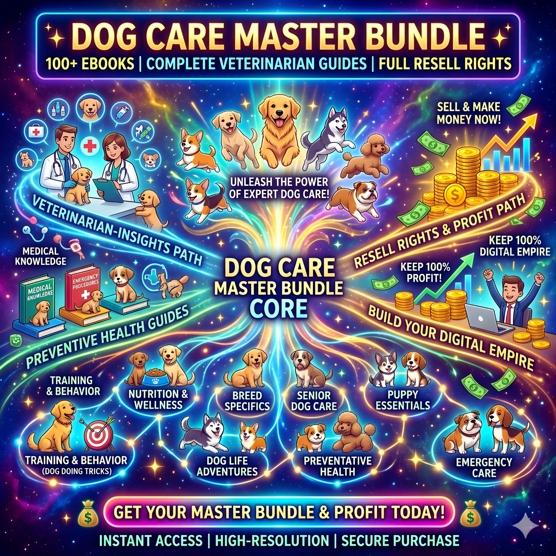 Dog Care Master Bundle – 100+ eBooks + Veterinarian Guide + Resell Rights! 🐶🔥