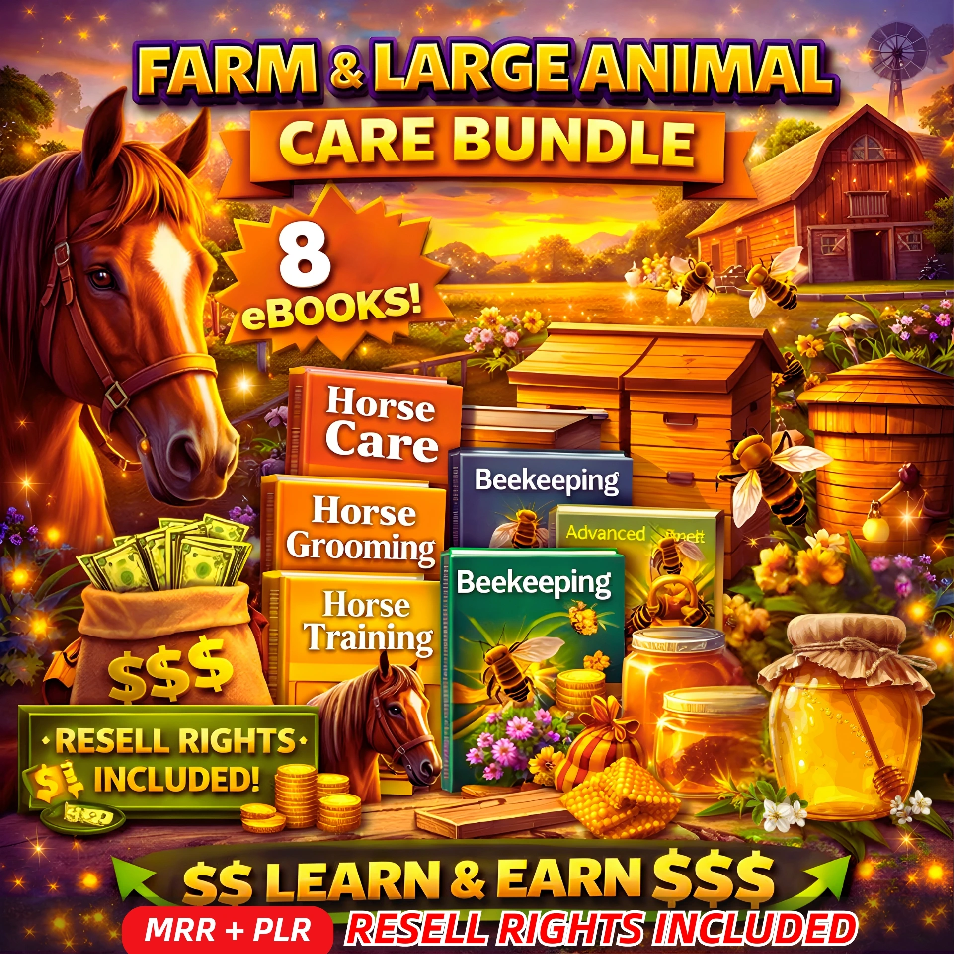 Farm & Large Animal Care Bundle – Horse & Beekeeping Guides + Resell Rights! 🐴🐝🔥